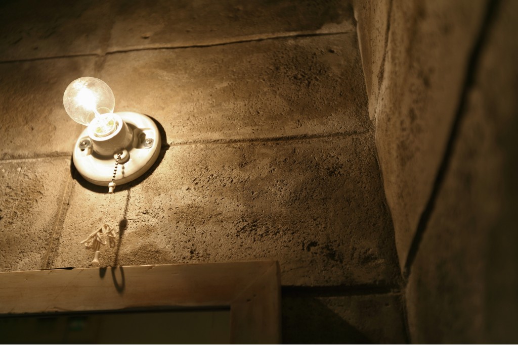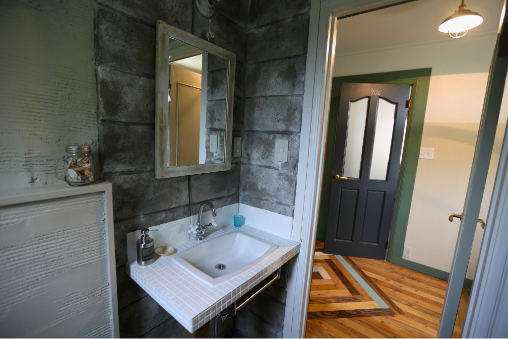 セメントの質感を再現した“塗り壁×ブロック調”。壁は、あえてラフさを残したセメント風仕上げに。光の陰影によって表情が変わり、インダストリアルならではの無骨さと深みが生まれました。