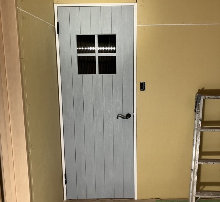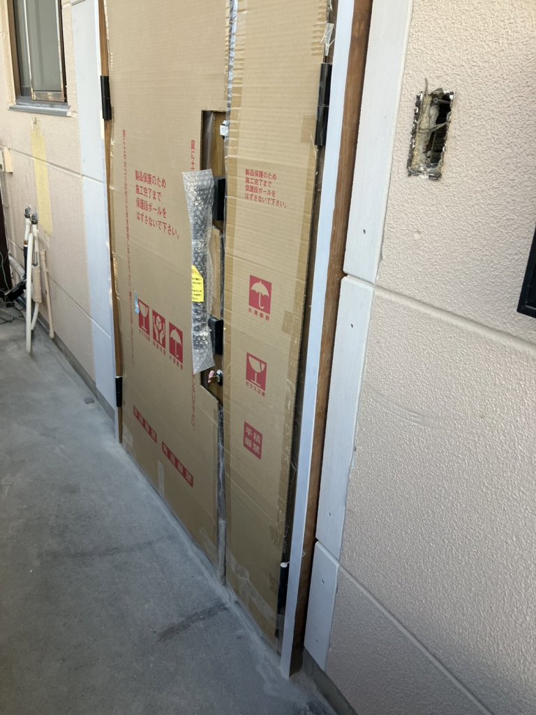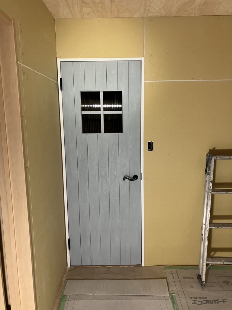 今回は、静岡市葵区にお住まいのK様のお家をフルリノベーションしています。本日は、建具の取付けとボードのパテ処理を行いました。