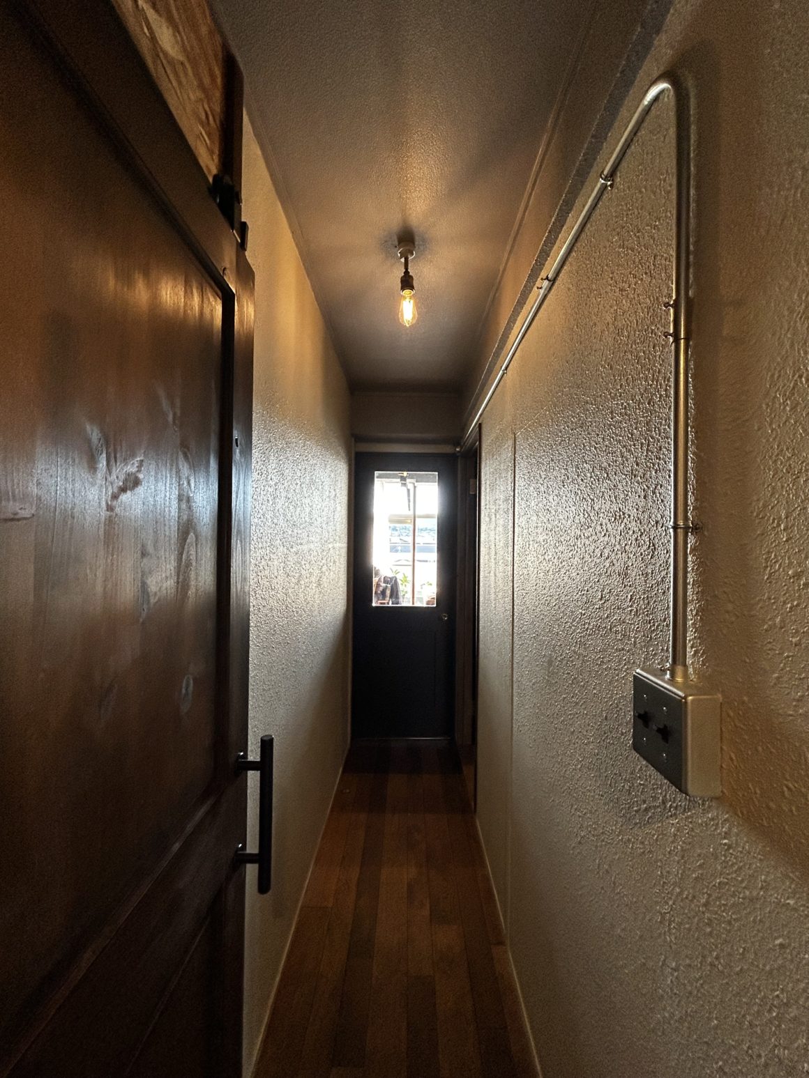 未分類2025.01.26重厚感抜群こんにちは!玄関を抜けると重厚感のある廊下がお迎えします。左の洗面所のドアは無塗装の建具にエイジング塗装という特殊な塗装を施しているんですよ。スイッチの鉄パイプとも相性抜群です。