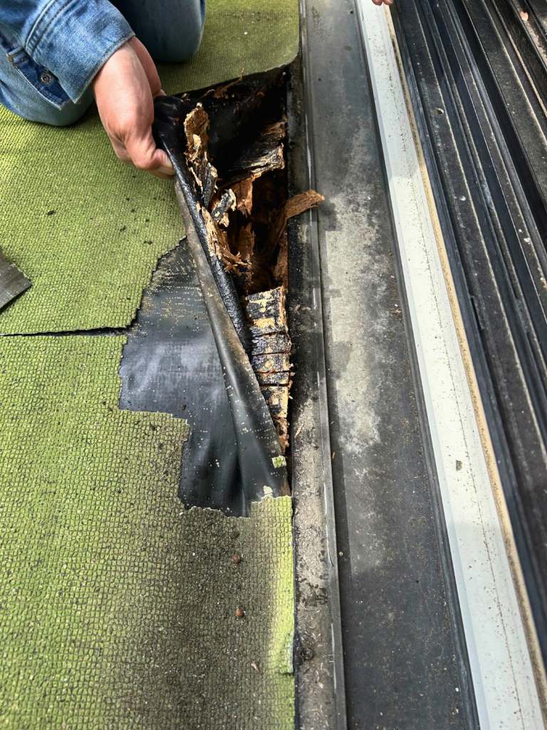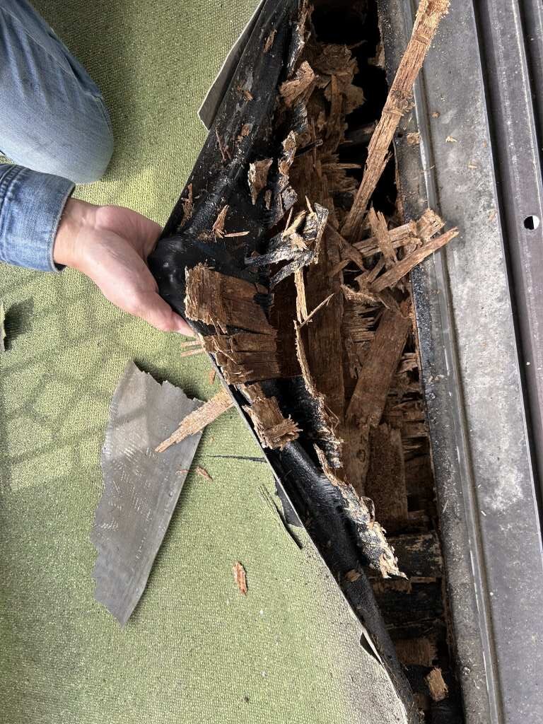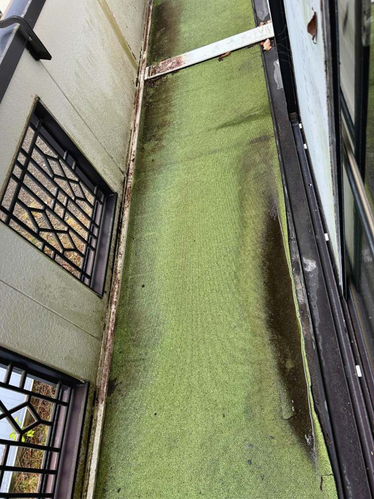 施工前のベランダは、床面にコケや汚れが目立ち、一見すると「古くなってきたかな」という程度に見える状態でした。しかし、床材をめくって内部を確認すると、そこには雨水の侵入によって腐食した木材や傷んだ下地が広がっていました。普段は見えない部分こそ、住まいの耐久性に大きく関わる重要なポイントです。