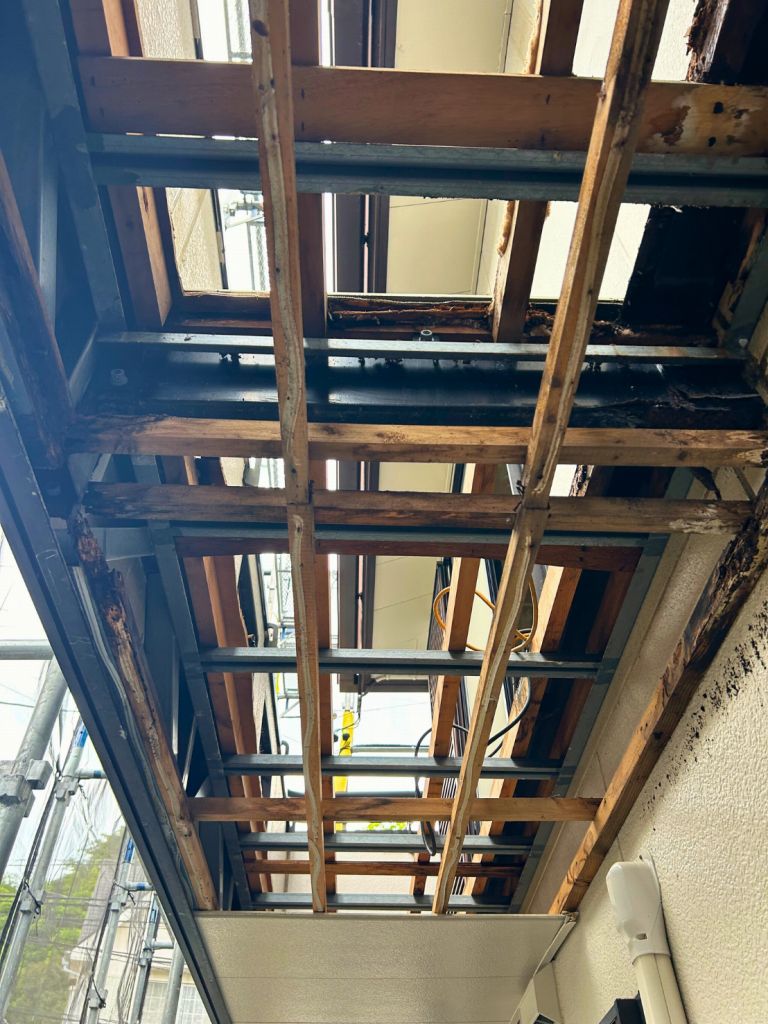 このまま表面だけを直しても、根本的な解決にはなりません。そこでIP RENOVATIONでは、劣化した下地をすべて解体・撤去し、構造部分からしっかりと補修を行いました。
