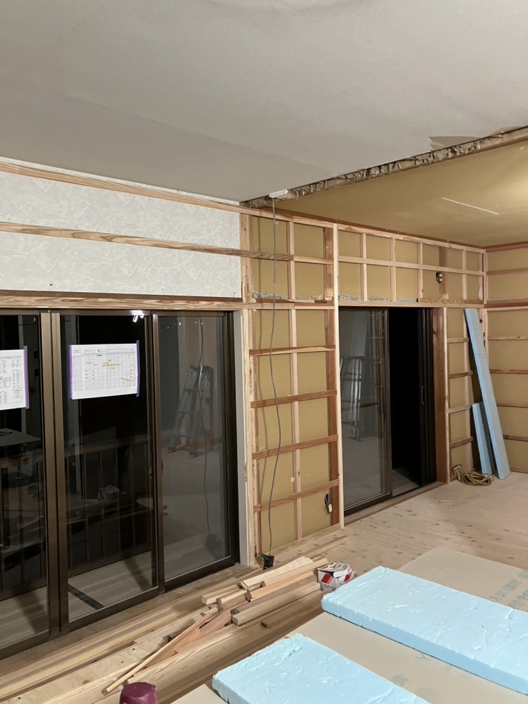 今回は、藤枝市の戸建て住宅をフルリノベーションしています。本日は、木下地組みの工事を行いました。